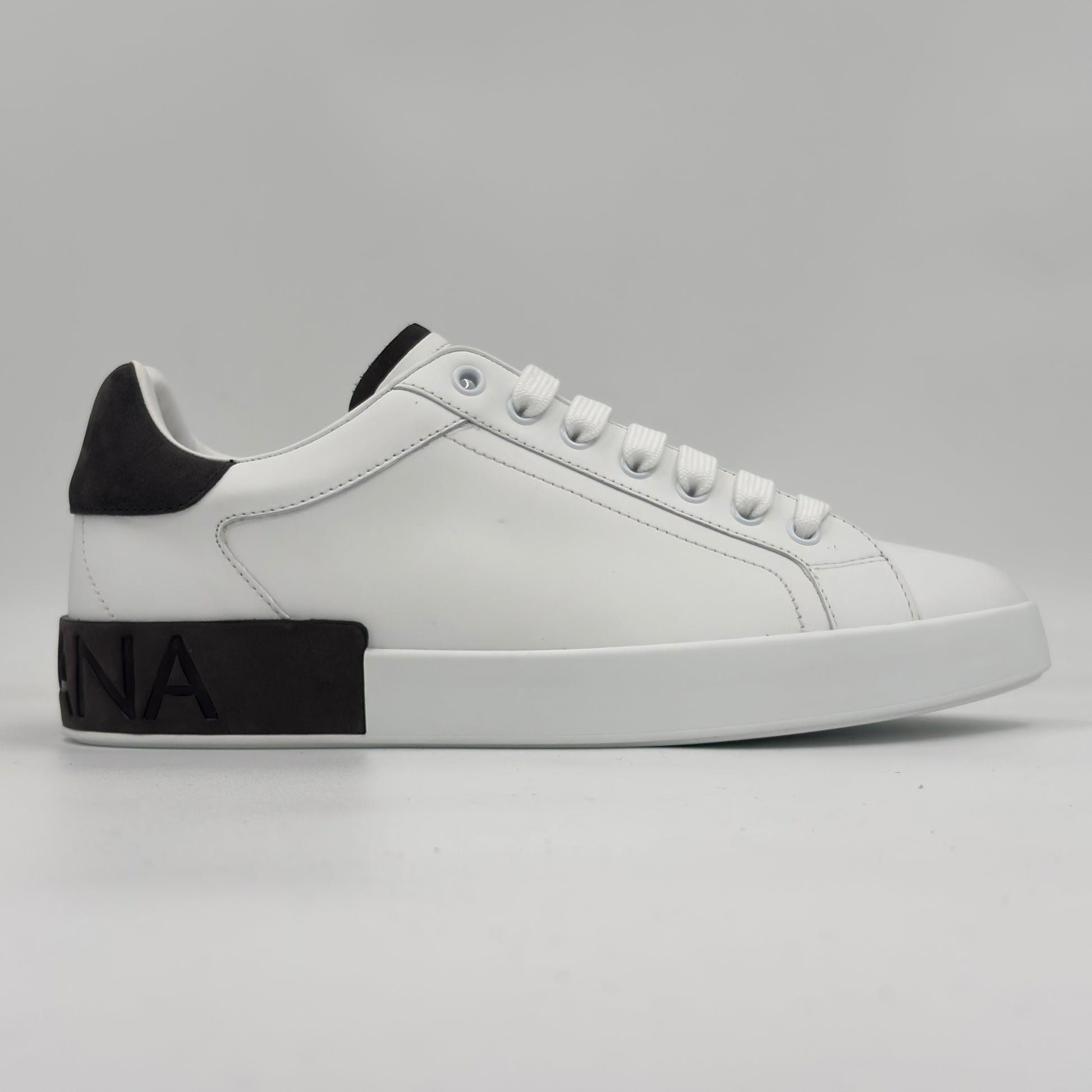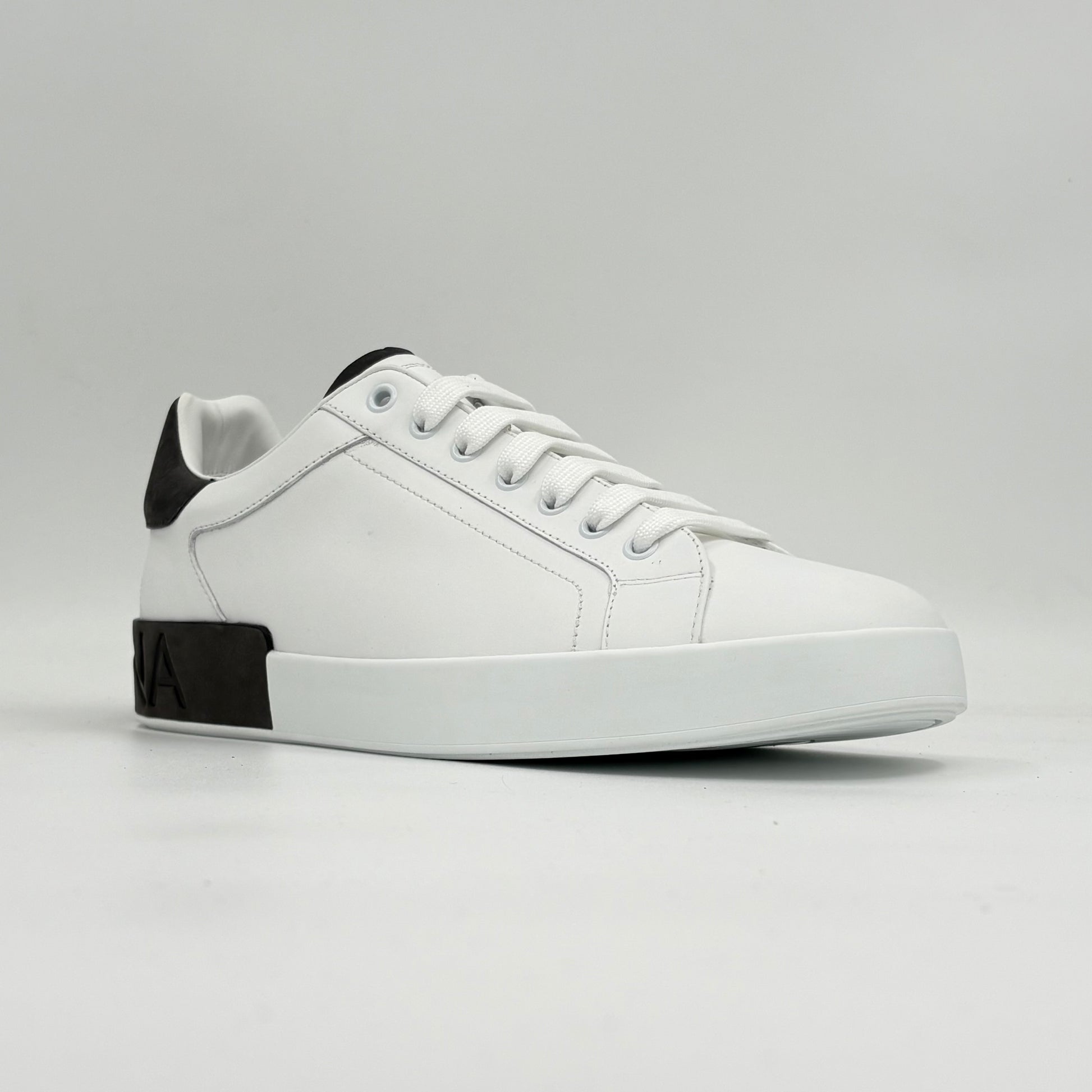 Dolce & Gabbana Portofino en piel de becerro con un diseño limpio y elegante. El acabado blanco se combina con detalles negros que le dan contraste sin perder sobriedad.